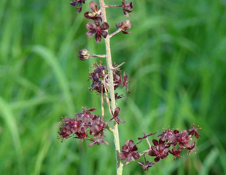 Tento druh sa vyznačuje zloženými listami dlhými až 40 cm. Dosky sú usporiadané v pravidelnom poradí. V hornej časti stonky sa listy zhromažďujú v skupinách po 3. Farba kvetov je červenkastá s hnedými škvrnami. Z púčikov sa tvoria laty. Koruna, vykúkajúca v strede kvetenstva, dorastá až do 1,5 cm.