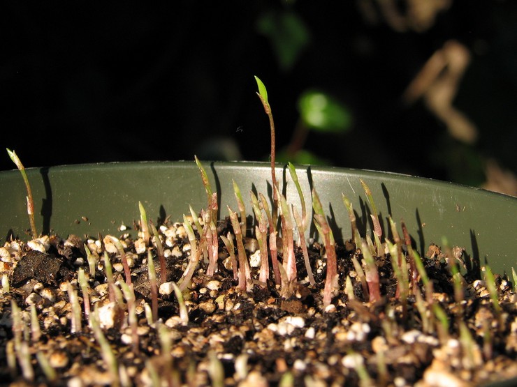Na urýchlenie klíčenia je nádoba pokrytá fóliou, čo vytvára skleníkové podmienky pre sadenice. Spravidla sa mladé výhonky objavia za 1,5 mesiaca po tom, čo sú semená v pôde. Ani rastliny nekvitnú hneď. Zvyčajne to trvá asi 3 roky od dátumu výsevu. Napriek dlhému a namáhavému procesu výsledok prekoná všetky očakávania.