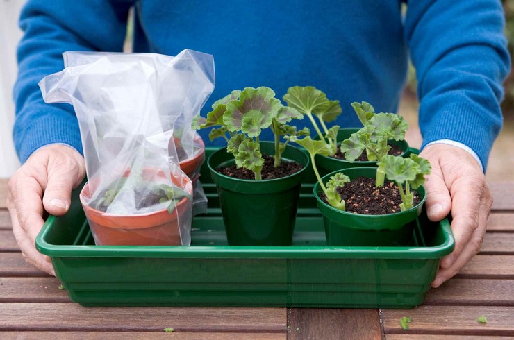 Vonkajšie muškáty sa však na jeseň stále presádzajú do kvetináča a premiestňujú sa do podmienok vhodných pre jeho život a rast. To sa deje tak, že sa veľká hlinená guľa prenesie do vhodného hrnca. Bush sa teda pohybuje s minimálnym poškodením.
